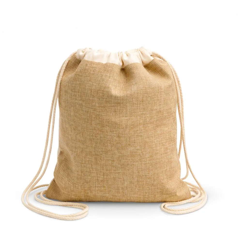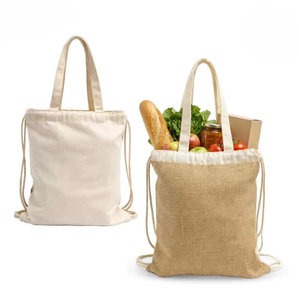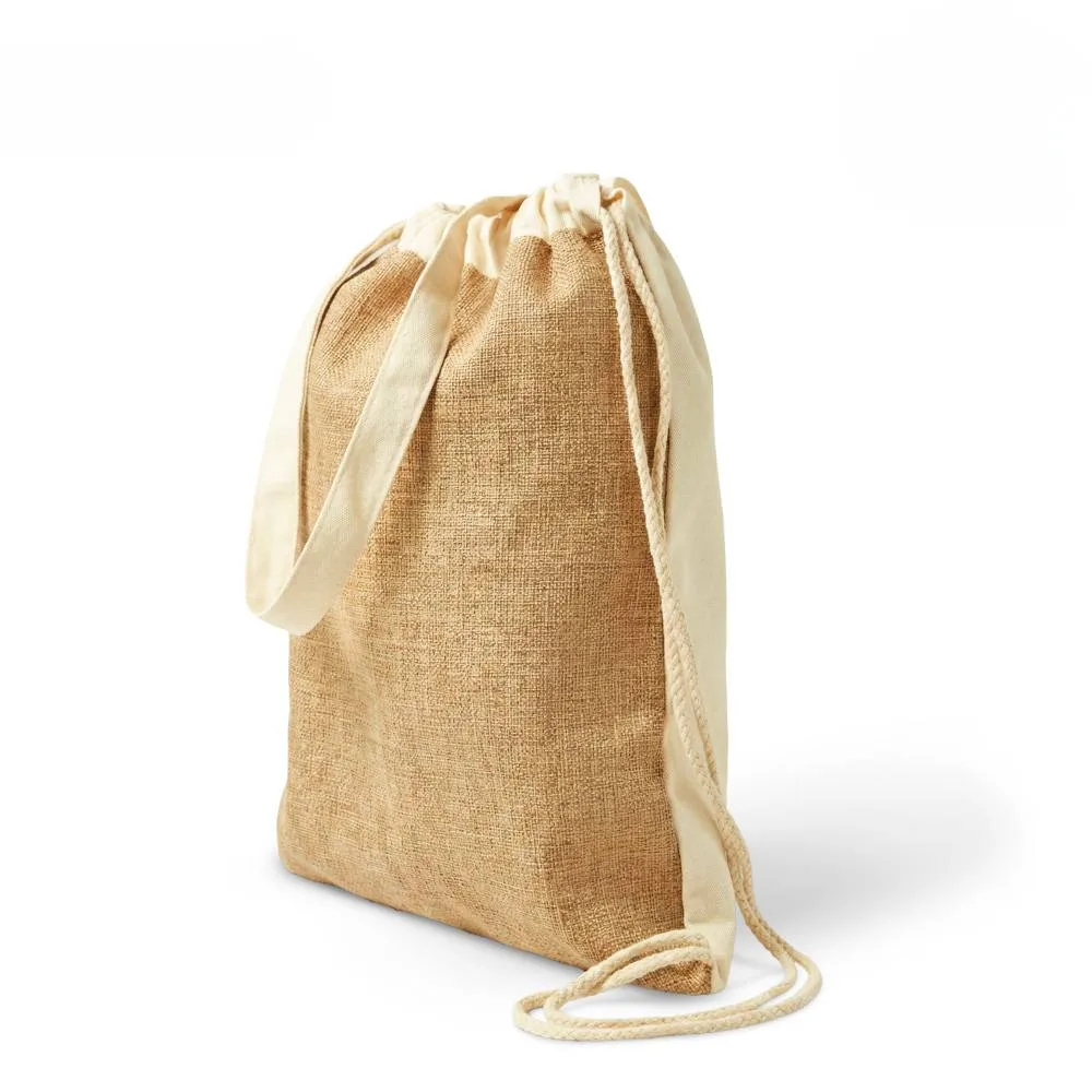 - La bolsa en algodón y yute permite personalización amplia
