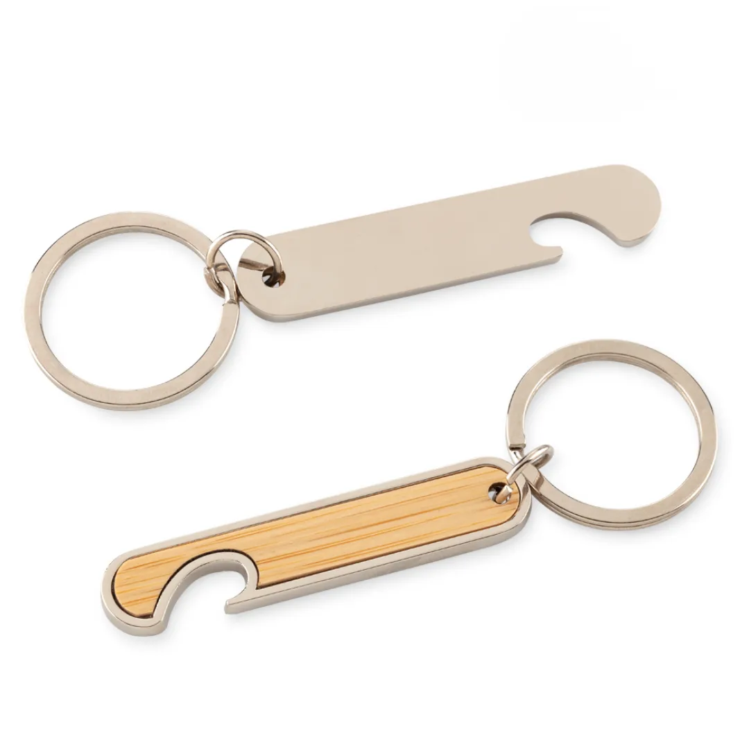 Llavero LAG-416, Llavero metálico con bambú y destapador. Producto Ecológico.