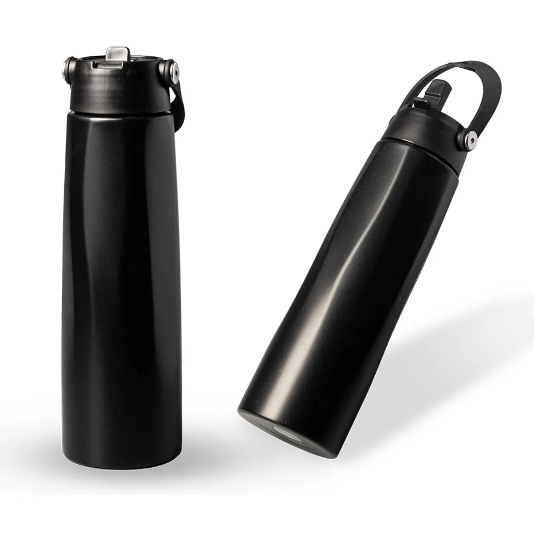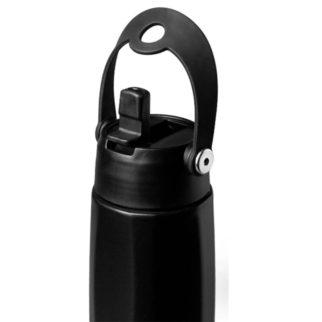 Su estructura metálica es resistente a los golpes, libre de BPA y de larga vida útil. Además, cuenta con una tapa plástica tipo rosca con pitillo incorporado y una manija ergonómica que facilita su transporte, convirtiéndolo en una elección práctica para actividades al aire libre, la oficina o el gimnasio.