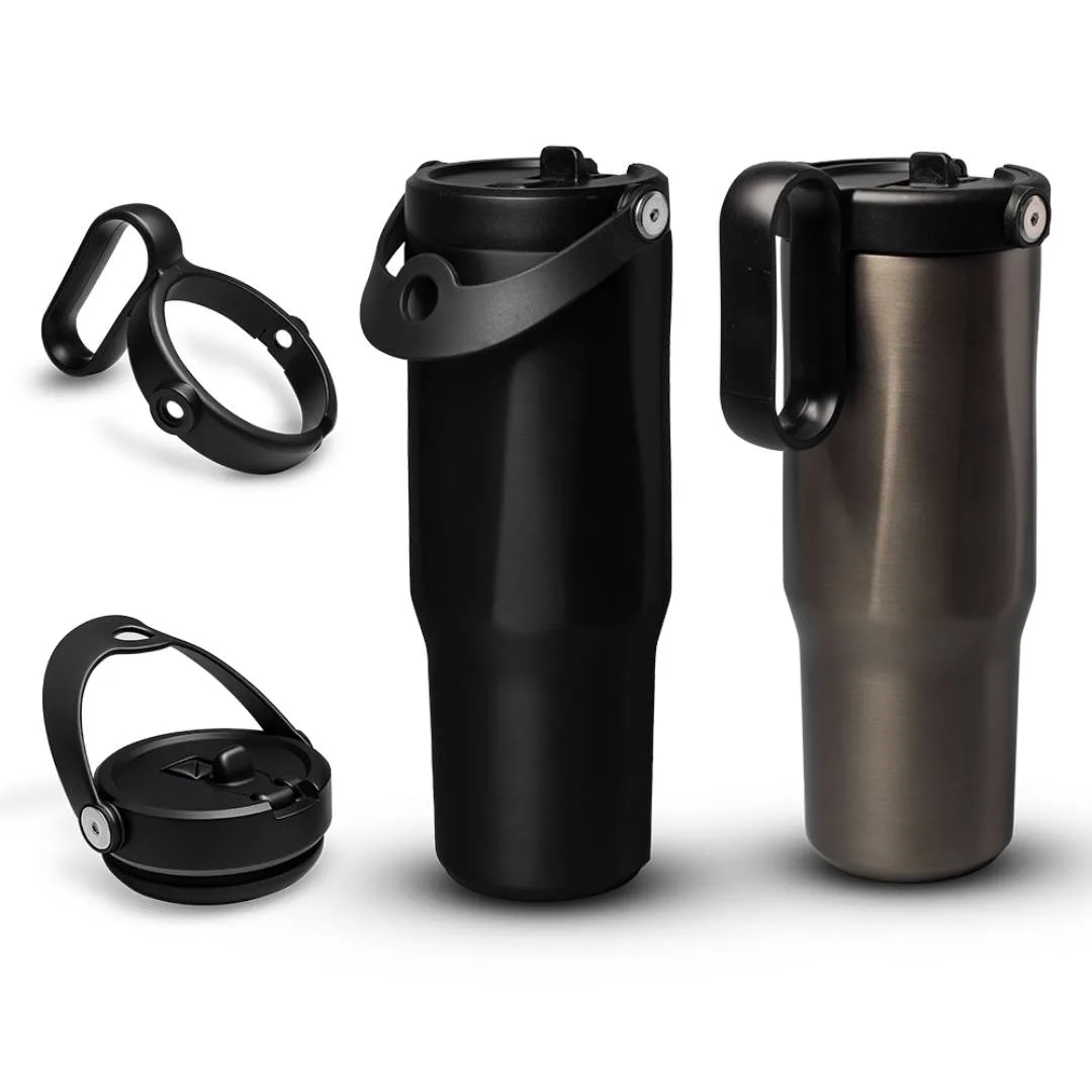 Mug Metálico Noma Chili 900 Ml MG-430, Mug doble pared vacuum en acero inoxidable reciclado, con aislamiento térmico que mantiene la bebida fría entre 8-10h aprox o caliente 3-4h aprox (puede variar dependiendo las condiciones climáticas). Tapa rosca plástica con pitillo y manija plástica adicional intercambiable. Capacidad 900 ml o 30 Onzas. Estuche caja individual.
