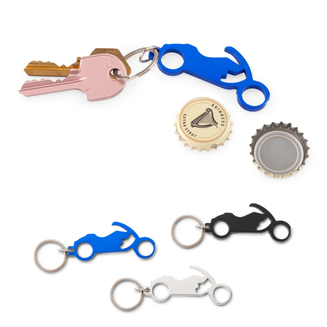 Este llavero es perfecto para quienes desean llevar consigo un artículo distintivo que no solo organiza sus llaves, sino que también sorprende al abrir botellas en cualquier ocasión. Ya sea como regalo personal, recuerdo para moteros, artículo promocional o merchandising corporativo, el Motorbike se convierte en un accesorio de alto valor de recordación.