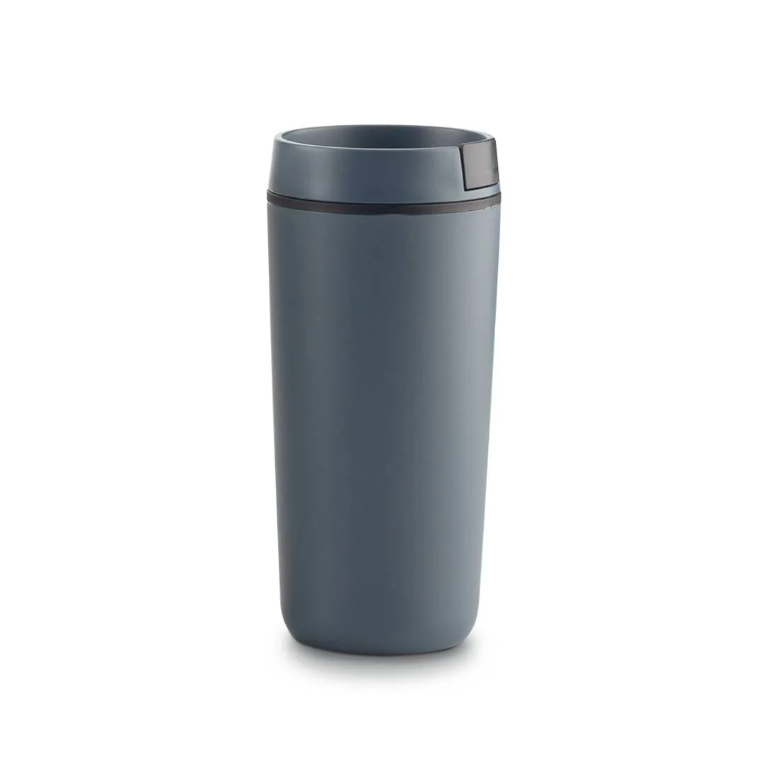 Fabricado en plástico de alta resistencia con doble pared, ofrece aislamiento térmico que mantiene la temperatura de tus bebidas por más tiempo, mientras su tapa rosca protectora evita derrames accidentales.